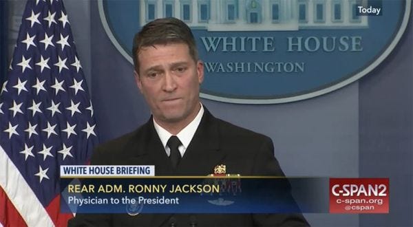 But why? Everyone knew from the start Jackson hadn't had any experience running a large organization, so he was kind of a stupid choice to lead the second largest agency in the federal government. The WaPo story was remarkably vague about all that, saying only that unnamed "White House and other administration officials" had been informed by senators that "In recent days, fresh concerns arose about Jackson’s management of the White House medical office," although the sources refused to go into detail. What concerns? Very concerning ones, no doubt. How about members of the Senate Committee on Veterans’ Affairs? Any details there? Not so much: