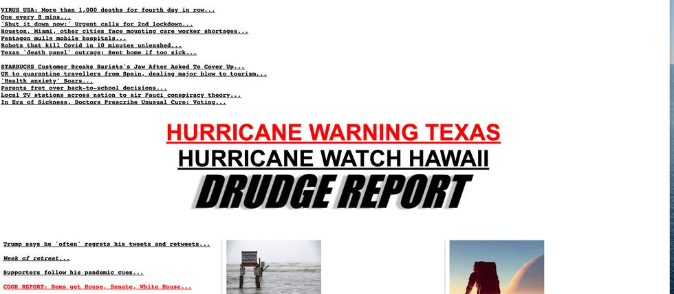 But if you've seen the Drudge Report recently, you know that it has changed dramatically, 180 degrees. Matt Drudge is now firmly a man of the progressive left. At times, his site is indistinguishable from The Daily Beast or any other woke propaganda outlet posing as a news company.