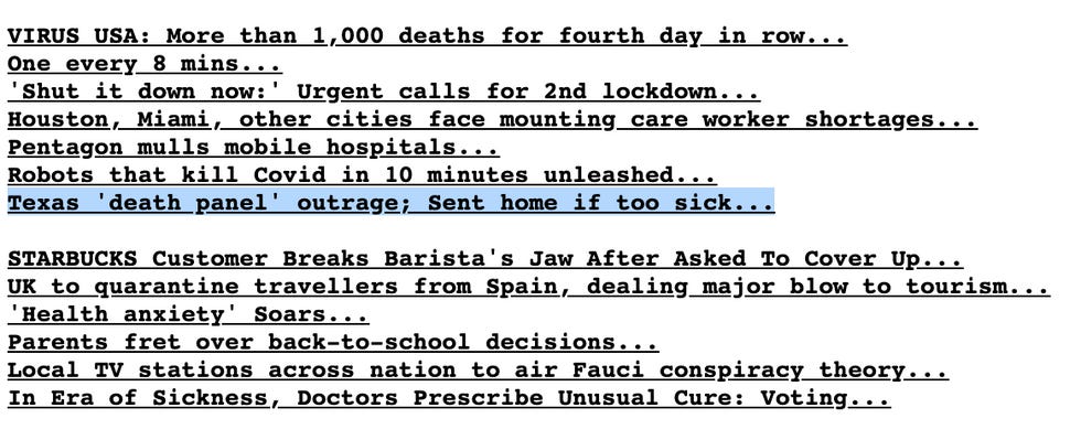 Okay fine, the death panels are still there, but they are sandwiched in between stuff about how people are dying of COVID-19, which is not a thing any conservative wants to hear about.