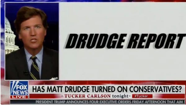 Drudge Sirens!: Tucker Carlson Says Matt Drudge Is Now A Woke Progressive Leftist