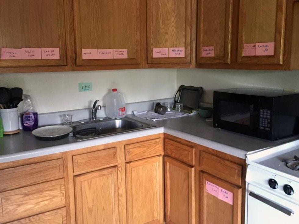 The congregation also fitted out the apartment with helpful little cards taped to everything, labeled in English and Arabic to help with the transition:
