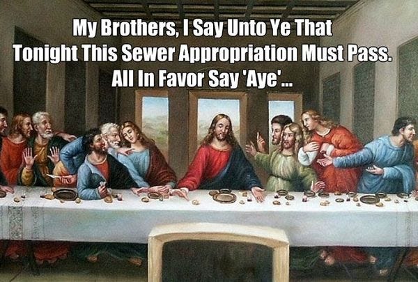 Jesus is still welcome at the Zoning Commission, right? It seems like every time he wants to build something, he has to ask for a variance. Every. Damn. Time.