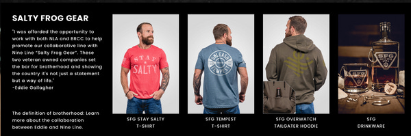 Gallagher has a new apparel line called "Salty Frog Gear." He describes it as a "coastal lifestyle brand with an edge," because we guess (allegedly) killing people in cold blood is "edgy." Salty Frog is like a psychotic Simply Southern or Vineyard Vines, both of which are real things. He also shamelessly pushes crap on his Instagram page. This includes merchandise from right-wing veteran groups that the Times adorably says "push a distinct brand of patriotism." This "patriotism" involves multiple items with the logo "KILL BAD DUDES" and a "Waterboarding Instructor" shirt. (Waterboarding is torture. )