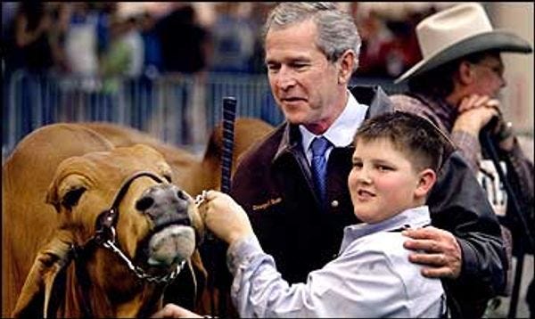 • Bushcampaign is running their attacks earlier than they wanted in attempt to keep attention onBush'shandling of the war on terror.Bush: "My opponent clearly has strong beliefs - they just don't last very long.". . . Patting cows at a rodeo,Bushsays, "I thought there was a lot of bull in Washington, D.C." [ WP and WP ]