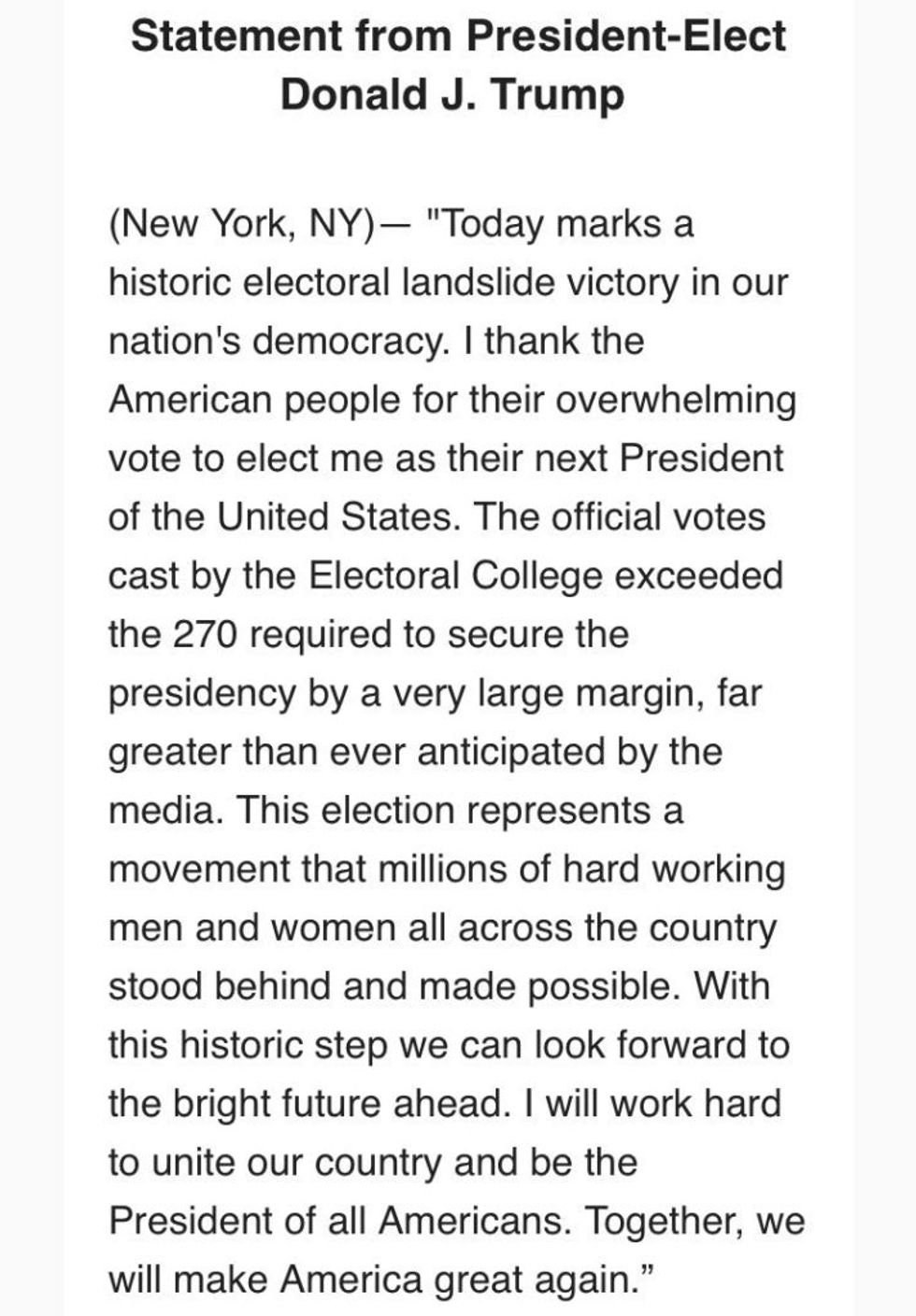 So that is that. Barring an act of a benevolent God, Trump will be inaugurated in January.