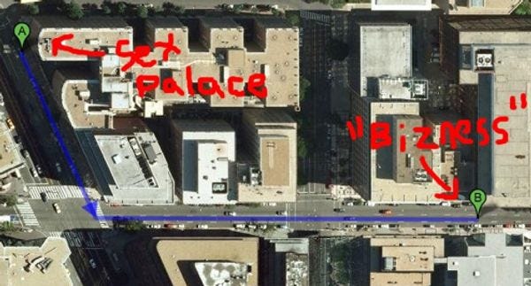 His first big real estate purchase -- this is his new thing, "real estate," a former American industry (right word?) that died in 2007 or so -- was a $180 million glass-windowed fucktower at 1615 L St. NW, a block or so away from the Mayflower hotel, where he had sex with Kristen Dupre or whatever. Next he will buy your home, which... well that's really great! It's hard to sell property these days.