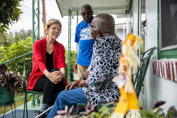 Elizabeth Warren is out with another of her darn plans, this time a proposal to pursue environmental justice as part of her overall commitment to fighting climate change. This is the seventh Warren policy proposal to touch on some aspect of addressing the climate crisis, and she vows to devote at least a third of federal climate funding to communities that have been screwed over by the fossil fuel economy. That's roughly a trillion dollars over ten years. Warren would make sure those communities that have borne the brunt of our messed-up climate have a say in how the cleanups and the green manufacturing of tomorrow will go forward -- a topic she brought up while visiting voters in Charleston, South Carolina, yesterday.
