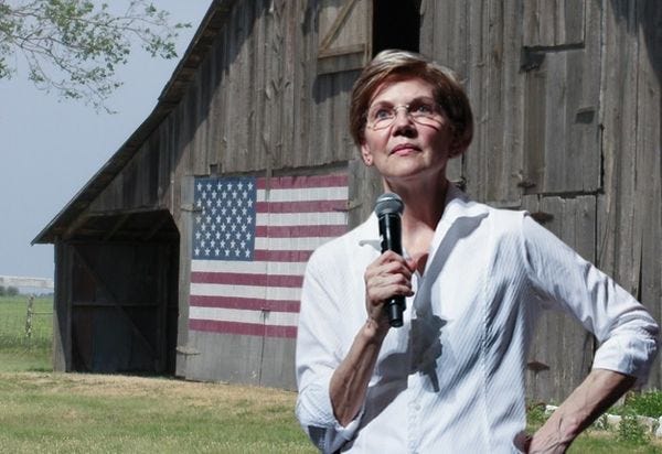 Elizabeth Warren is at it again with another policy proposal, this one aimed at revitalizing rural America, which she says has been squeezed by increasingly consolidated agribusinesses, and largely ignored by Washington. It's a good old progressive agenda for the heartland that should shut up anyone who thinks reaching out to rural voters means you have to sound like Donald Trump without the overt racism. Warren, who grew up in Oklahoma, knows better, as does Yr Editrix's mom.