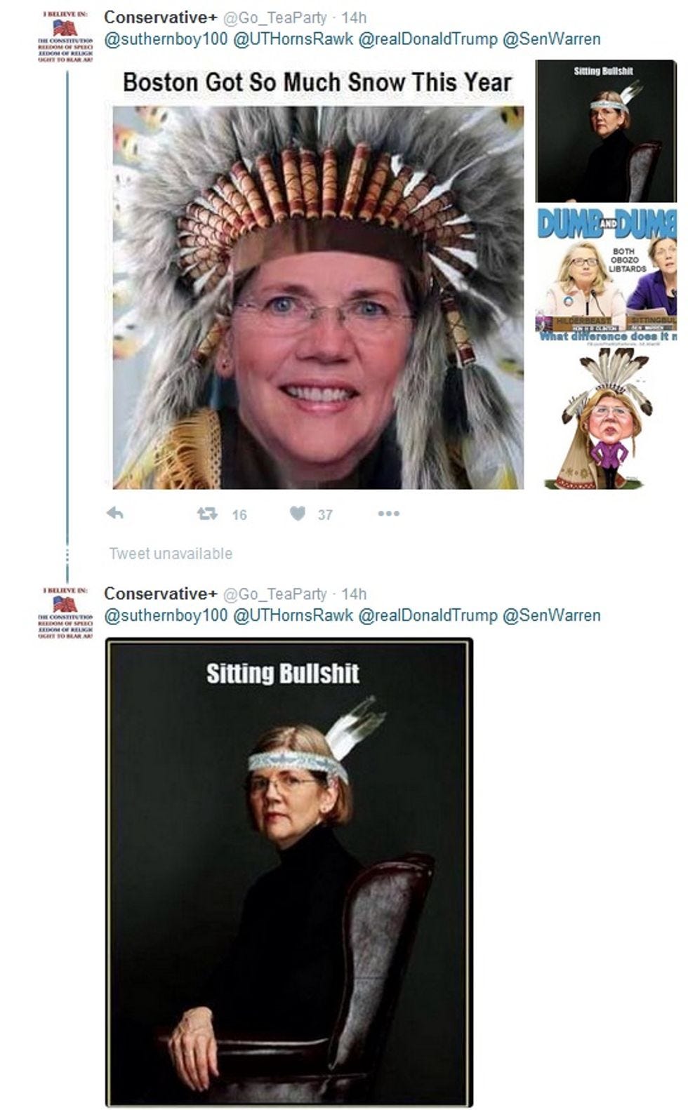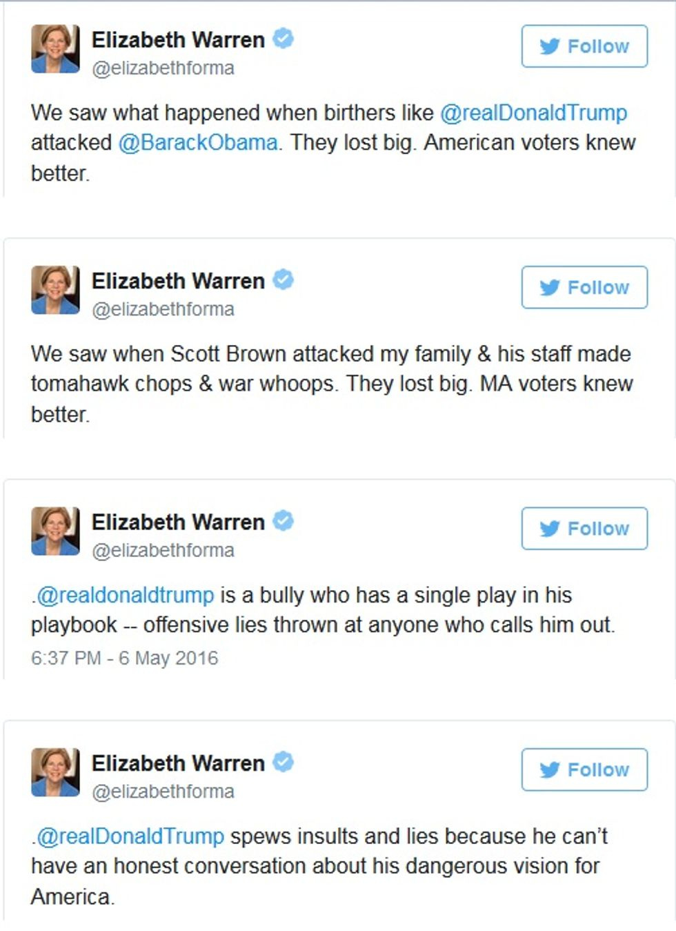 Was there more? There was, in point of fact, more. Oh, look, and instead of calling Trump names, she's actually hitting him on substance. Remember how well Scott Brown's tomahawk-chopping supporters defeated Warren? Weird how that goofy professor lady manages that, despite being so GOOFY: