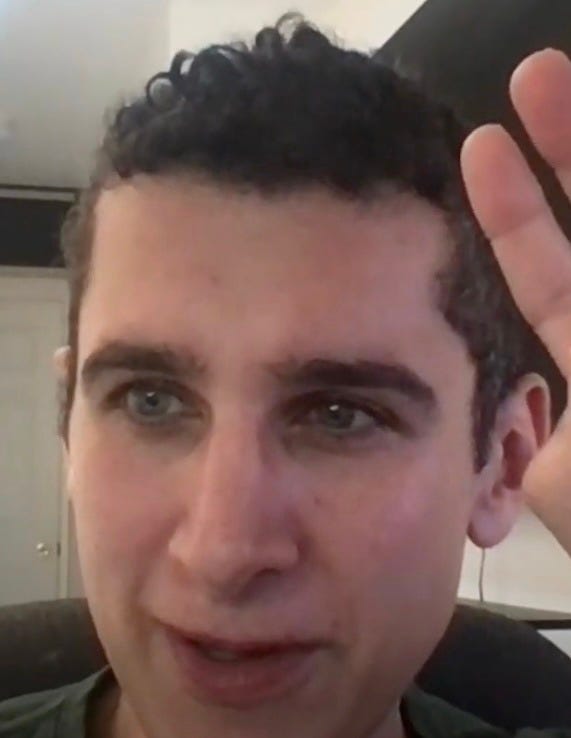 Which is true! Bizarrely, like JD Vance, Hanania seems to wear a lot of eyeliner, as in this screenshot from one of his videos. Very specific gender performance for thee, but not for me?