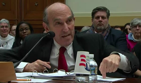 In 1981, the Salvadoran army massacred more than 800 civilians, but Abrams testified to Congress that reports of the massacre were FAKE NEWS, saying,"it appears to be an incident that is at least being significantly misused, at the very best, by the guerrillas." He later defended America's record in El Salvador as a "fabulous achievement." So there's that.