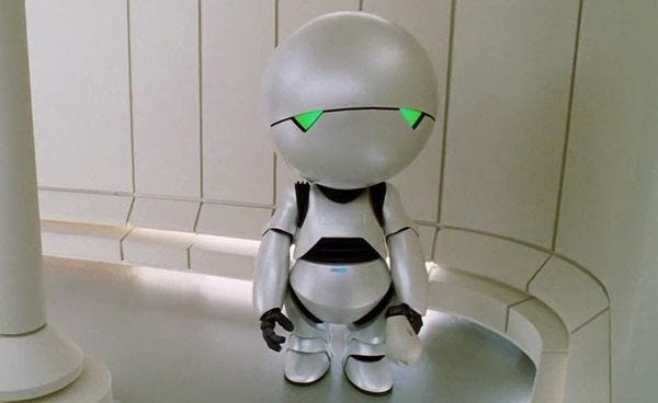 Musk stopped short of saying the robots would have Genuine People Personalities, but knowing his fondness for monetizing bits of nerd culture, we're completely confident the things will include an option to make them sigh and complain that they're incredibly depressed, and and what's more they have this terrible pain in all the diodes down their left side.