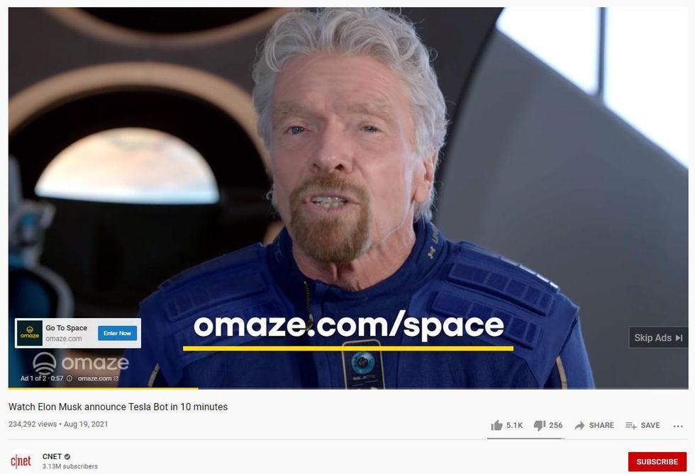 Speaking of which, we keep having this recurring nightmare where whenever we write about humanity's bleak future, any YouTube video we want to use is preceded by Richard Branson trying to convince us to sign up for a contest that will send one lucky winner on a brief trip to the edge of space.