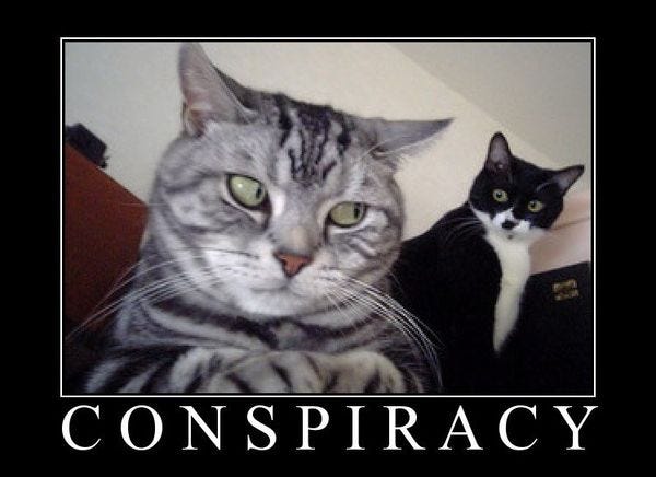 On the other hand, I'm very disappointed that this conspiracy theory has not (yet!) managed to tie in Benghazi!1, chemtrails, Sharia law, and the disappearance of Judy Winslow