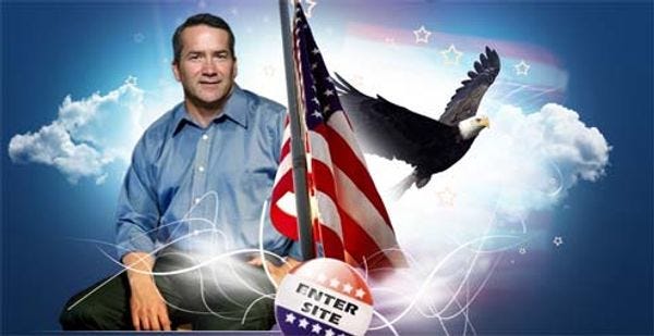 More proof that Wonkette readers are the best and most attractive readers on the whole Internets! A casual mention that we aren't up on any of the hilarious goings-on in today's Georgia primary immediately gets us a tip from hero commenter TJBeck that we should take a good, hard look at one "Jody Hice." Just going to his website rewards the reader with the awesomely composited hunk of Flash animation above, with the candidate and the swooping eagle and the real corporeal flag and the ghostly spirit flag behind it, all emerging from sort of dimensional portal, all set to dramatic orchestral music. But are there YouTube videos, you're probably asking? With CGI'd words swooping around nauseatingly? Oh, yes, there are YouTube videos.