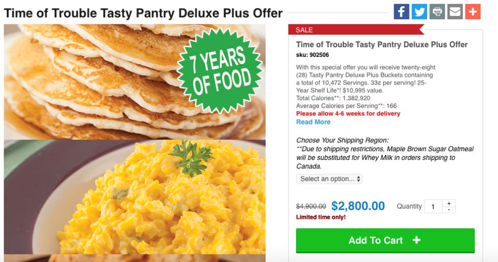 We won't send you any apocalypse food buckets if you send us money, but we will keep writing stuff for you. Click below to help fund us!