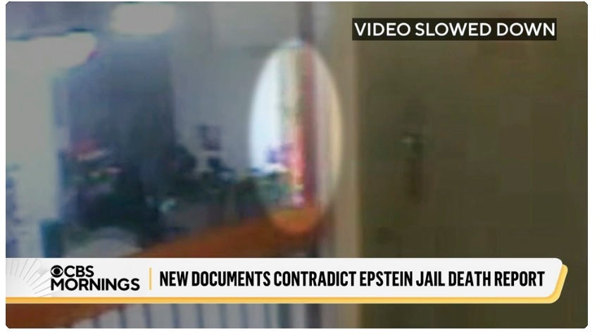 Buuuuuttt, “A new analysis of surveillance video by CBS News shows a partial view of what may be someone possibly headed up to Epstein’s cell tier the night he died.”
