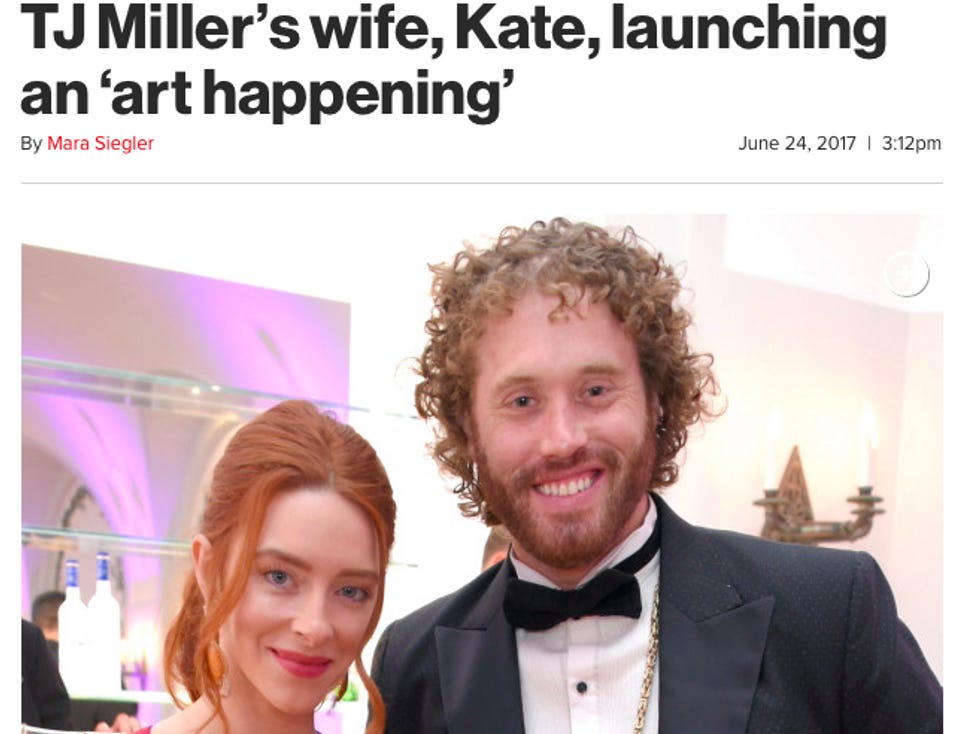 T.J. Miller is an actor with his own IMDB entry and everything. Kate is an artist of dubious merit, but unlike her husband, she wasn't accused of sexually assaulting a woman in college. (MIller's "Silicon Valley" costar Alice Wetterlund recently claimed he was a bullying asshole as well.) Someone should fetch Kate some White-Out.