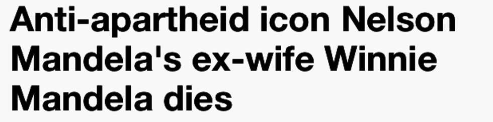 Anti-apartheid activist Winnie Mandela was a controversial figure unique from her ex-husband, Nelson. She still received second billing in her own obituary.