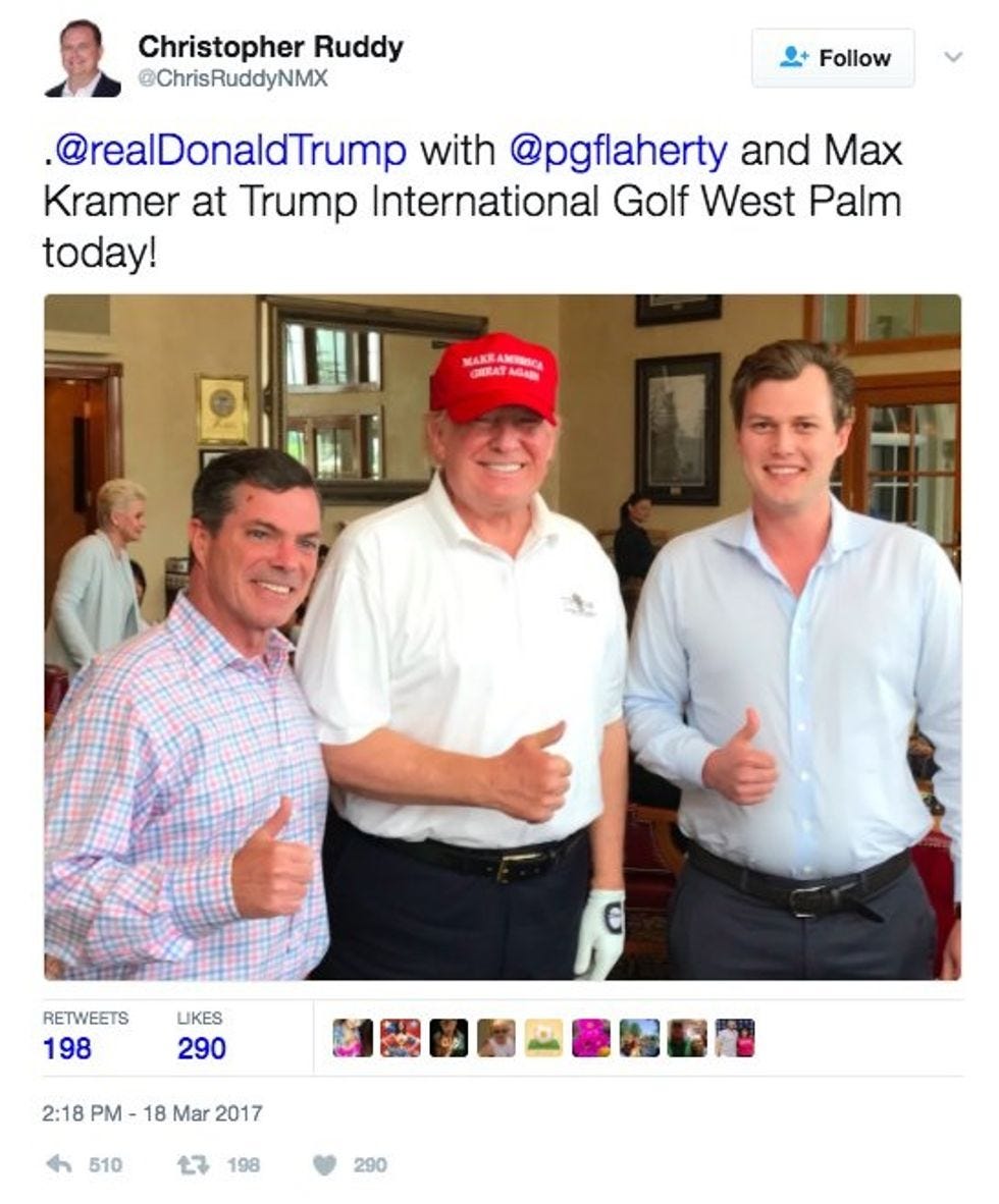 After Kamisar was picked up and returned to Mar-a-Lago, he added that he hadn't actually seen Trump himself but did get an update on the president's busy day at the golf course: