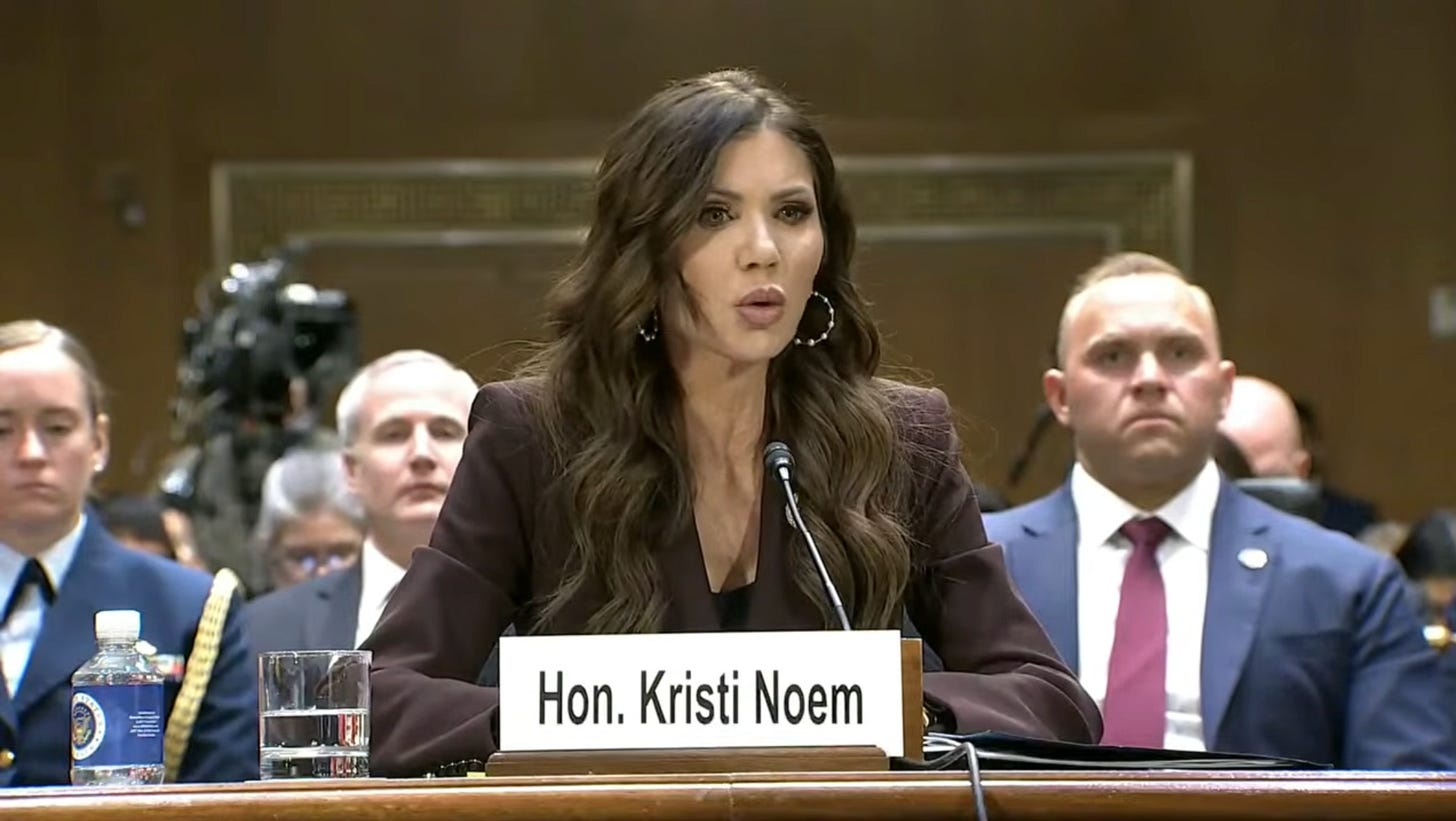 On Tuesday, Department of Homeland Security Secretary Kristi Noem spent four-and-a-half-hours testifying before the Senate Judiciary Committee — and I’ll give her this, she did not break once. At no point during the hearing did she admit to doing a single thing wrong or to having any knowledge of any ICE officers doing anything wrong or anything bad happening to anyone while being held in detention. She had a script and, by God, she stuck to it. She stuck to it when it made no sense whatsoever, when told stories that practically any other normal person on earth with a basic sense of right and wrong would have to characterize as, at the very least, “a bad thing.”