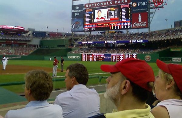 While the economy continued to melt down over the weekend, Federal Reserve Chairman Ben Bernanke spent a few hours hiding from his life at a Washington Nationals baseball game! Alas, he could not escape his horrible, horrible sadness: "Like at every other professional sporting event, a couple minutes is devoted to throwing out free t-shirts and Ben went after a free t-shirt last night like a man possessed. I have rarely seen such intensity in the eyes of a human being. ...Yet, the look of agony upon Ben's face when the t-shirt slipped through his finger tips struck me as odd." It's just one thing after another for this guy, right? [ The Foodandbeermonger ]