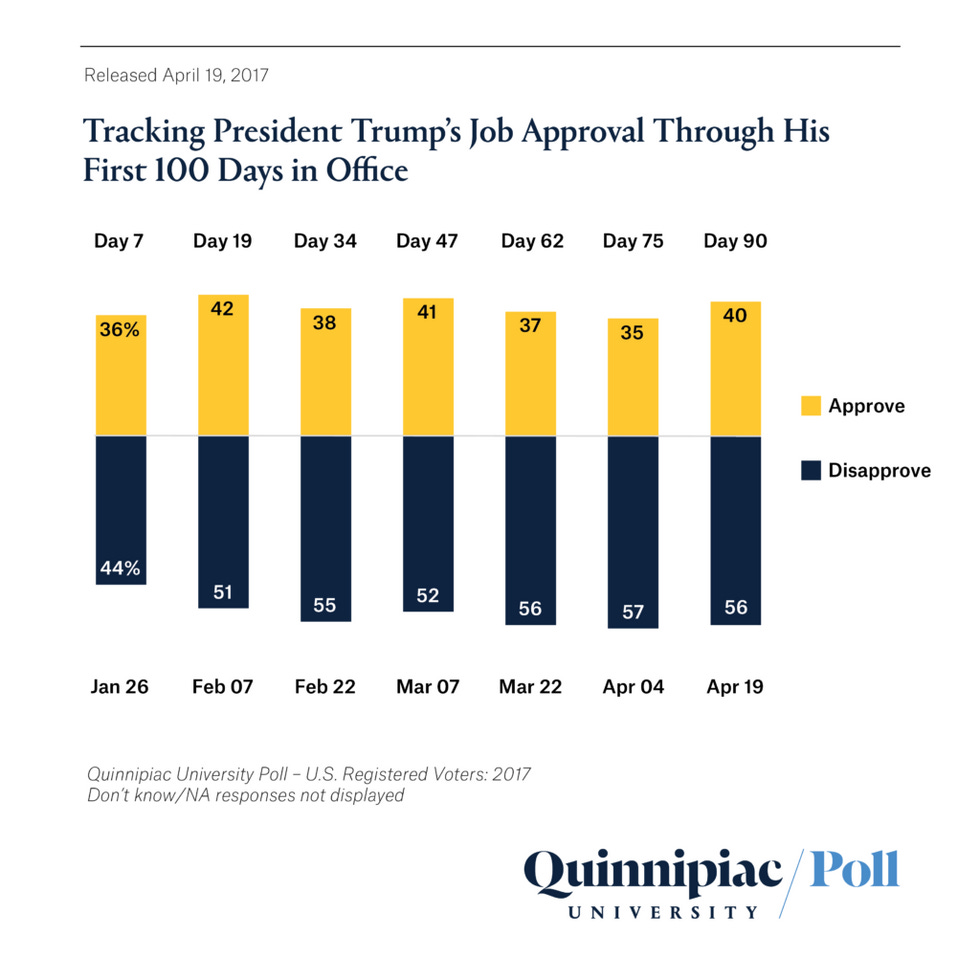 Now, if we may share you a graphic from Quinnipiac, showing the fluctuations of Trump's approval rating since he has become president: