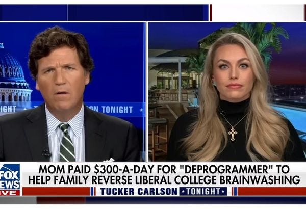 Ms. Rockwell graduated in 2015 with a bachelors degree and a head full of wokeness, and it left her so badly alienated from her family that her mother, Melinda Rockwell, needed to hire a cult deprogrammer to save her from all that indoctrination. Her mother says the deprogrammer charged $300 a day, although neither the Post nor a follow-up Fox News story Sunday specify how long their services were needed. In an interview with Tucker Carlson, Annabella said she was warned the entire process could take up to "seven years," which would get her from graduation until right now, but she didn't claim the deprogrammers were involved that long.