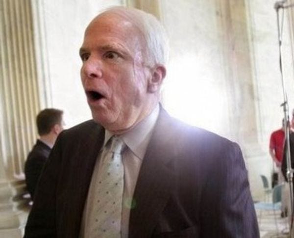 This interview with Sen. John Grumpypants McCain is a real hoot if you think rolling your eyes repeatedly until you get dizzy, fall down, and vomit is fun. Oh, plus McCain totally stomping on Ted Cruz's dreams. Wait, thatispretty fun.Here are some fun facts you can learn about one of the world's sorest losers: He "wrote" a "book" with his "creative partner Mark Salter." It's all about blah blah who cares boring zzzzzzzz yawn. Like we really think John McCain wrote a single word of it his own self? Nope, we do not. On immigration reform, he is really feeling the fierce urgency of whenever: