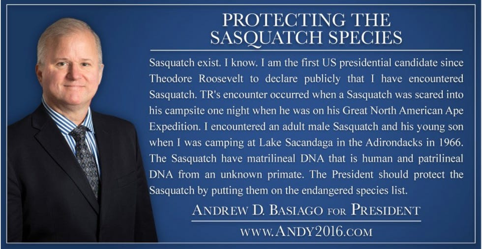 If there is anything I pride myself on, it is knowing way too much about almost every kind of weird shit there is to know about. Thus, imagine my shock when, while in an internet hole earlier this week, I discovered the existence of a man named Andrew Basiago who claims to be a time traveler and who is also supposed to be running for president in 2020. As it turns out, I am totally late on this, he has been a thing for YEARS and he also ran for president in 2016. Someone should have told me. I should have known. I could have been obsessed with him for at least three years by now, and it's just not fair.