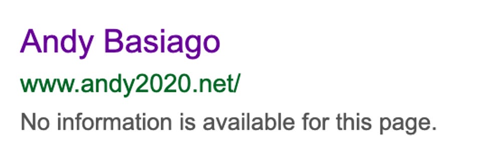 He does have a campaign site domain name set up, but sadly, it is not currently in operation and I can't see it.