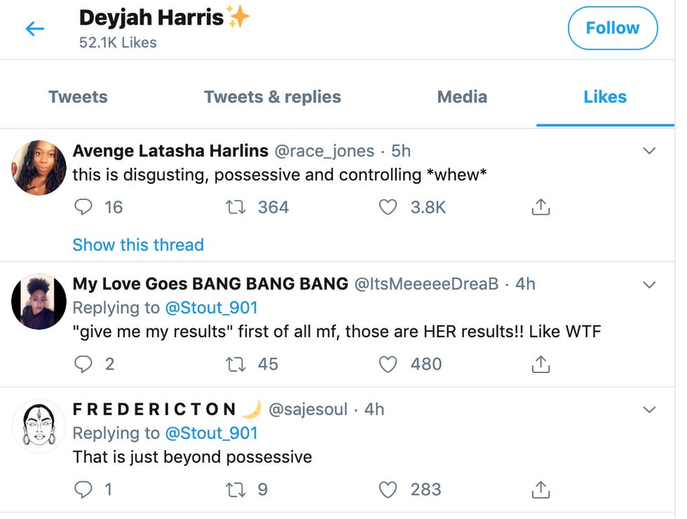 For her part, Deyjah has liked several tweets expressing disapproval with her father's creepy behavior.