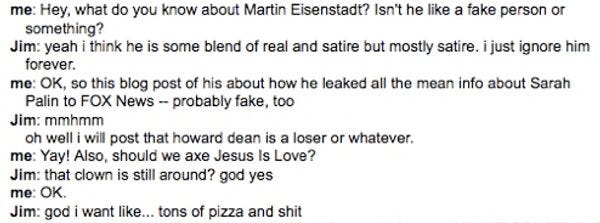 OH THIS GUY. "Martin Eisenstadt" is a comic invention who surfaces every 8-10 weeks to release satirical videos about Rudy Giuliani and spread fake rumors about the McCain campaign. Your Wonkette has seriously fallen for this trick once, when Eisenstadt reported that Paris Hilton's family was FURIOUS about using their beloved blonde dingbat in McCain's celebrity video. It seemed true! And funny.