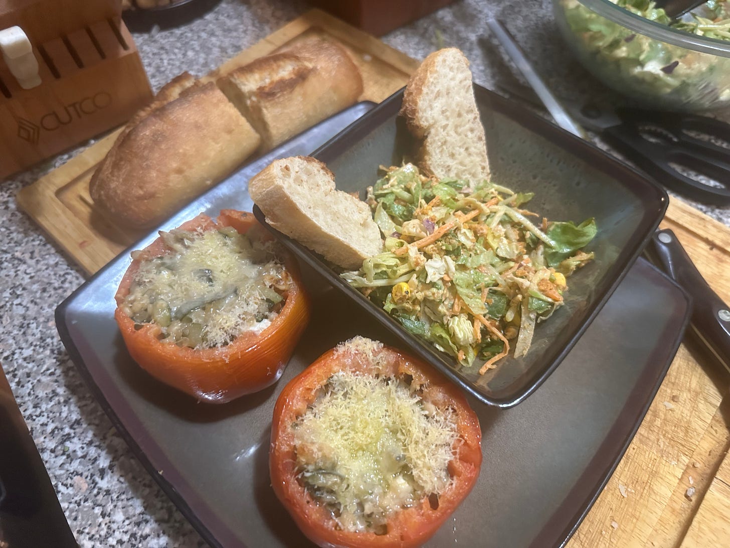 Yes well. That’s what happened. It’s a stuffed tomato recipe and you can’t have it because it’s not on the internet and we’re not typin’ it right now.