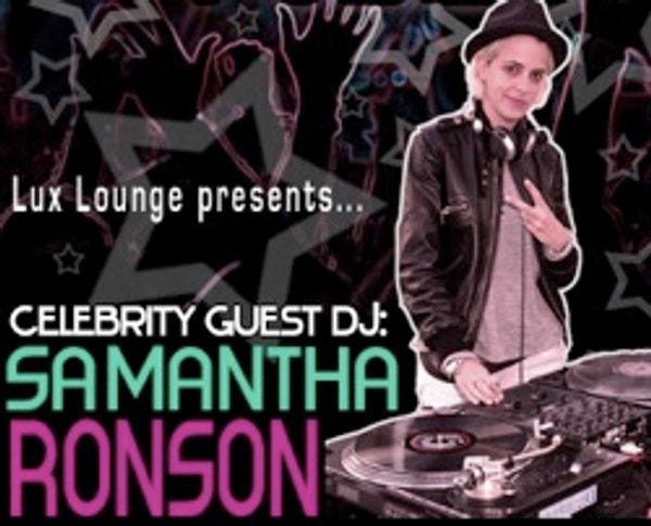Even your mom has heard of famous celebrity DJ Samantha Ronson, because of the whole famous-celebrity girlfriend thing. Ronson's the guest DJ tonight at Lux Lounge. You must go to the Lux website for special secret RSVP instructions (it involves sending an RSVP email to get on the list).