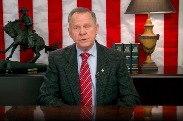 Moore, a man so incredibly repulsive that people in Alabama of all places decided to vote for a Democrat rather than vote for him, told the American Family Association's Bryan Fischer on Friday that he was "seriously considering" running for Senate again in 2020. Moore claims that the election was stolen from him, on account of all the "disinformation" going around about him in 2017.