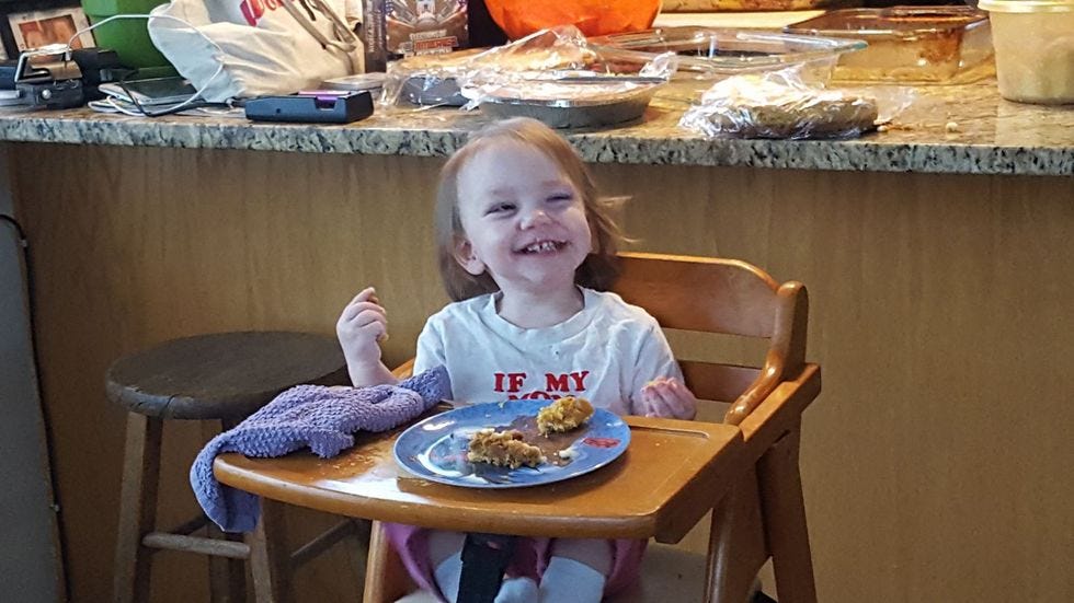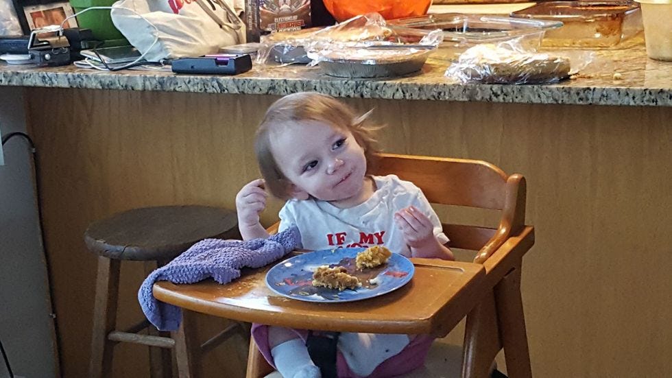 What's this, MORE BABBY PICTURES???? I now present to you "Babby Eats Day-After-Thanksgiving Morning Pie."