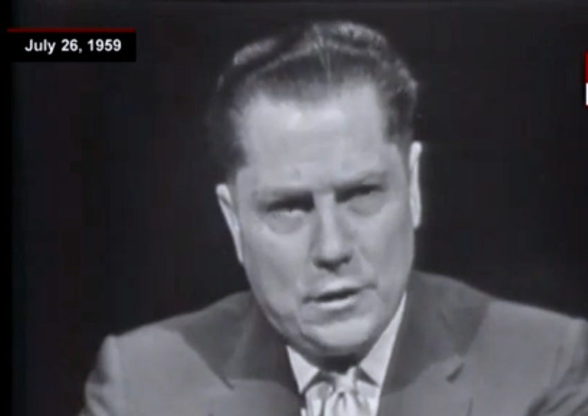 And following years of Eisenhower’s Attorney General William P. Rogers and then Robert F. Kennedy’s DOJ trying to get charges to stick to Hoffa, hearings in the Senate about alleged improprieties, and a court-appointed board of monitors for the Teamsters, finally some charges did stick.
