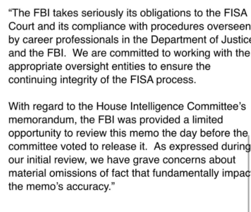 And in that spirit, the FBI -- just like a Trump appointee at the Department of Justice did last week! -- has released a statement that says, hey, Devin Nunes's memo is quite literally FULL-O'-SHIT: