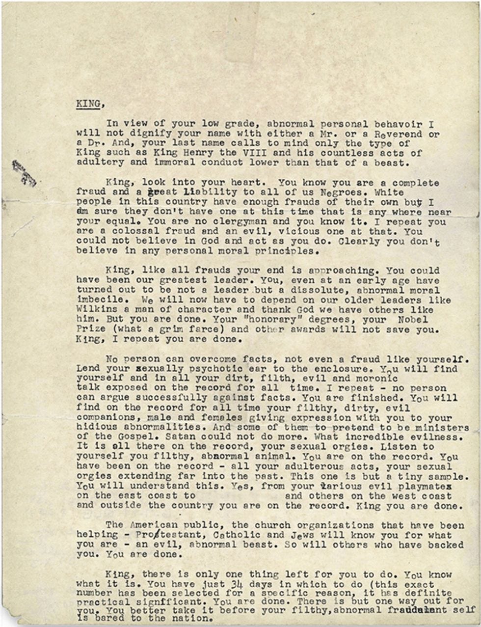 A truly astonishing historical document was released Tuesday: A 1964 letter sent by the FBI to Martin Luther King, attempting to blackmail him with the release of surveillance tapes of his scandalous sexxytimes.
