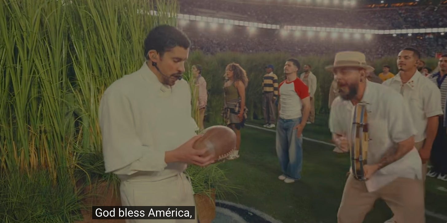 Woke garbage? The show was so wholesome there was a literal traditional heterosexual white wedding on the stage. Children being tended to at home by their parents, no daycare! Working people toiling away at traditional jobs like a dancing Richard Scarry illustration! Bad Bunny expressing pride in his American culture! He even said “God Bless America” a half-dozen times.