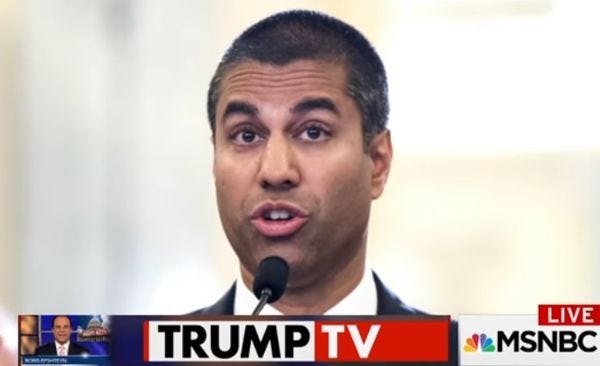 In an exciting example of Unleashing the Free Market, Federal Communications Commission (FCC) chair Ajit Pai exploited one weird regulatory loophole to allow right-leaning Sinclair Broadcasting Group -- already the single biggest owner of local TV stations in the country -- to expand even further by buying 42 stations from Tribune Media, which will mean that, if the deal goes through, Sinclair stations would reach 72 percent of American homes -- or at least the ones that still watch local news. This is a bit of a problem, maybe, since current law -- that's from Congress, not the FCC -- limits any single company from owning stations with a national audience bigger than 39 percent. But maybe an exception is OK for a broadcaster that sends its stations "must-run" pro-Trump editorials and scripted content they're required to present to their local audiences, without any indication that the material isn't locally sourced.