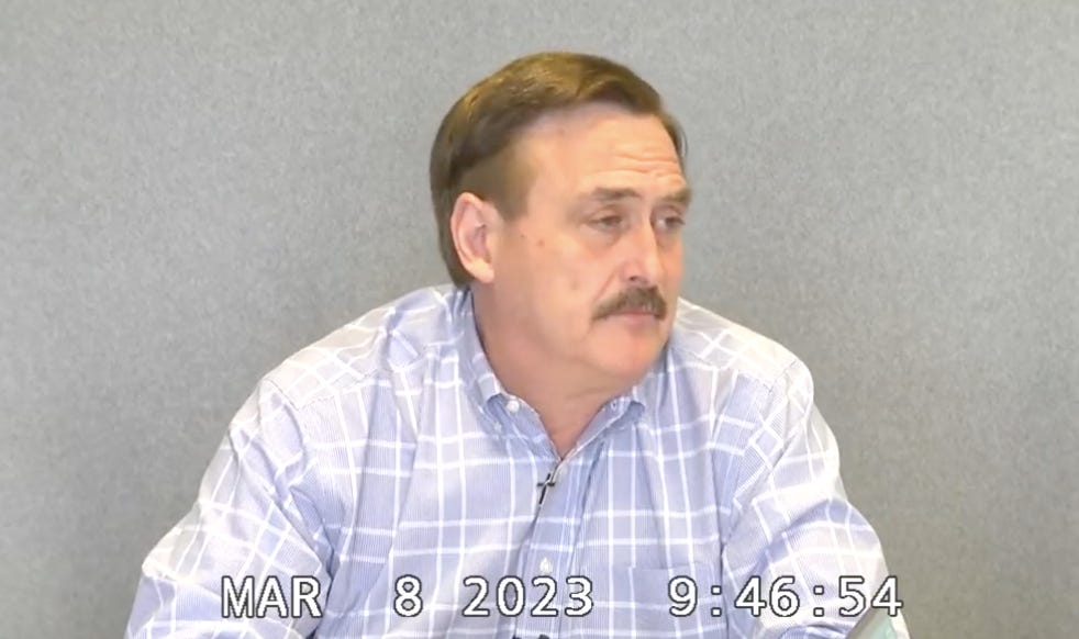 And now let us check in with Mikhail Donaldovich Lindell, everyone’s favorite screamy recovered(?) crackhead conspiracy theorist, who you may have last seen rambling about AI robots on Steve Bannon’s “War Room,” getting his phone seized by the FBI at Hardee’s, or in that deposition where he was frothing and hollering at the lawyer for Dominion Voting Systems employee Eric Coomer that he was an AMBULANCE CHASER EVIL ASSHOLE for saying that MYPILLOWS were LUMPY.