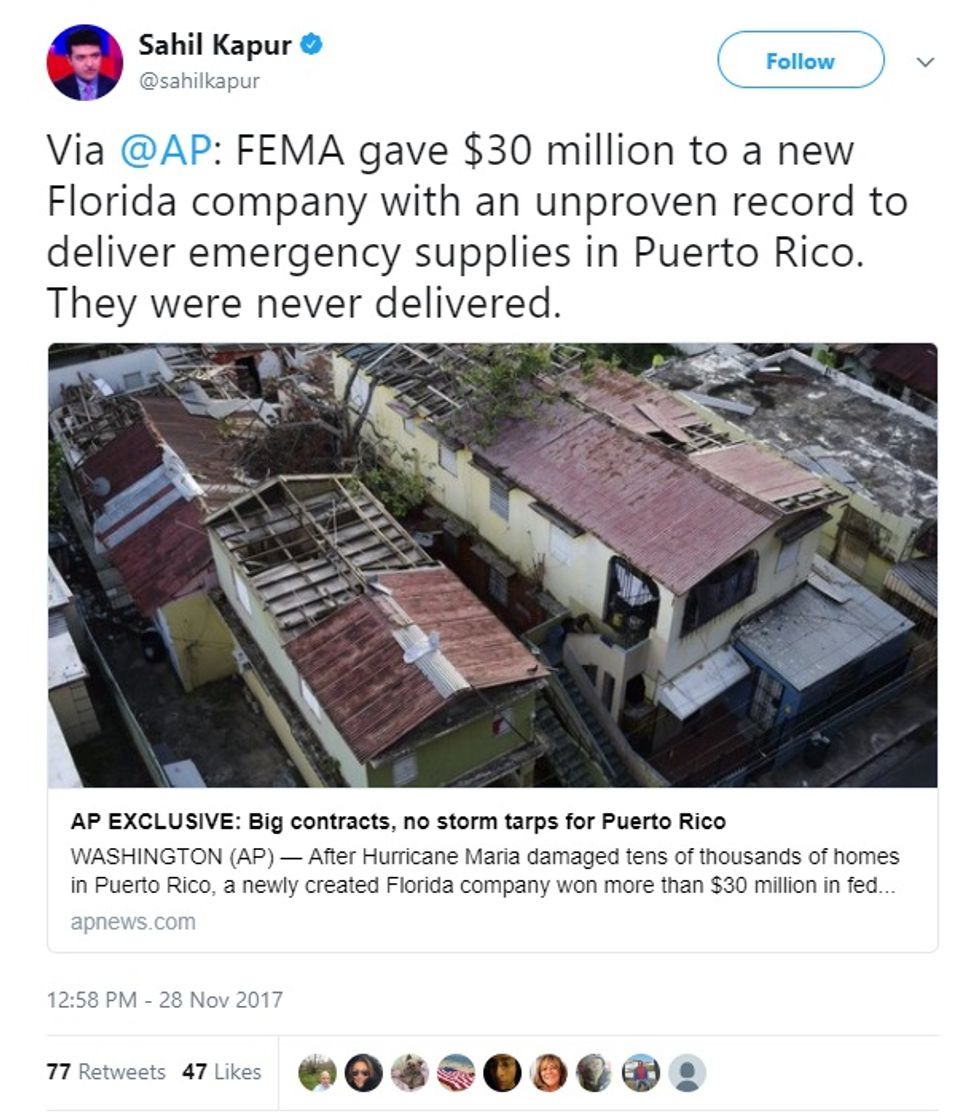 FEMA Gave $30 Million Contract To Two Florida Guys To Get Tarps For Puerto Rico. What Could Have Gone Wrong?