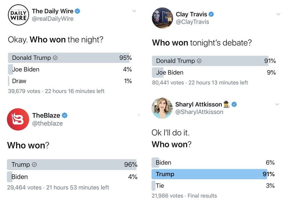 Most snap polling showed viewers saying they thought Biden did better in the debate, which data nerd Nate Silver noted is pretty typical as Election Day gets close: