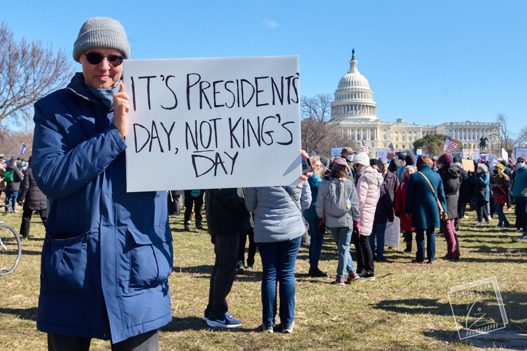 Thousands turned up to protest the Trump administration in Washington DC and across the United States yesterday. Dubbed "Not My President's Day," people in DC rallied at the Capitol Reflecting Pool outside of the US Capitol Building and called for Congress to exert its constitutional authority to act as a check on Donald Trump's blatant flouting of longstanding laws.