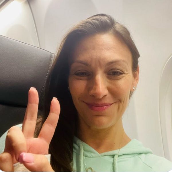 Yes, that’s Florida Commissioner of Agriculture Nikki Fried, Democratic candidate for governor, preparing to fly the now COVID-friendly skies. She tweeted a photo of herself on a plane, maskless and flashing a peace sign.