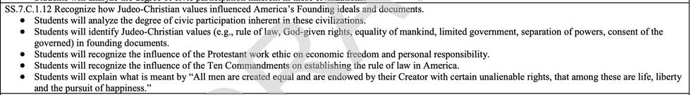If the Florida Department of Education gets its way, Civics and Government teachers will soon be required to indoctrinate 7th and 9th graders with a bunch of Christian Nationalist nonsense about how "Judeo-Christian values influenced America's founding ideals and documents." With these new benchmarks, SS.7.C.1.12 (7th grade) and SS.912.C.1.5 (9th grade), students will be taught a bunch of crap that is completely biased, largely untrue, and which will no question run afoul of the First Amendment restriction on state-sponsored religion.