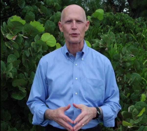 One bit of the "substance" the narrator leaves by the wayside came when Rick Scott whined about the encounter in a speech in Boca Raton: