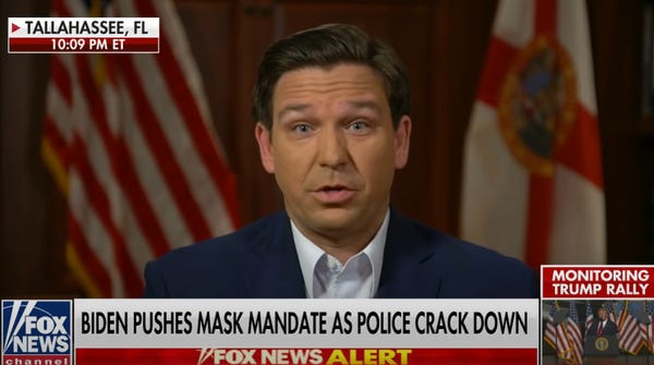 DeSantis has just extended the order preventing the enforcement of mask mandates or any restrictions that acknowledge current reality. The governor seems to think that COVID-19 will cease to exist if we all stop believing in it, but he's gotten the coronavirus confused with Tinkerbell.